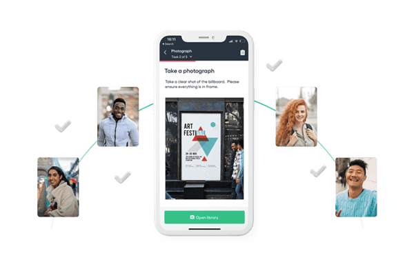 Arrive at the location for the job, and complete the tasks using our smartphone app. Take photos, answer questions, and submit them for review.